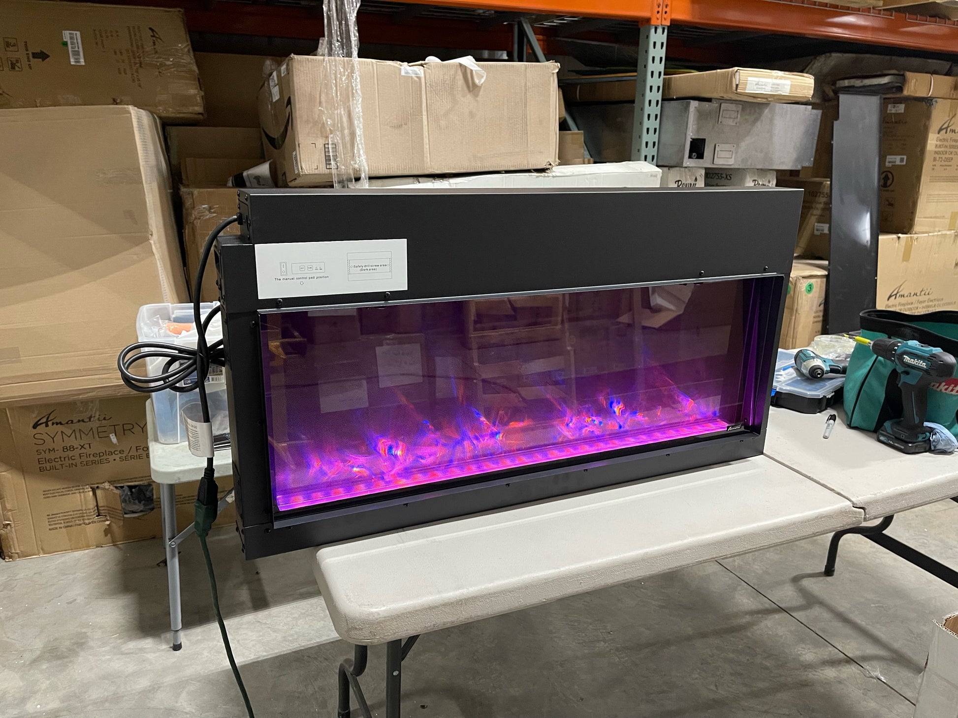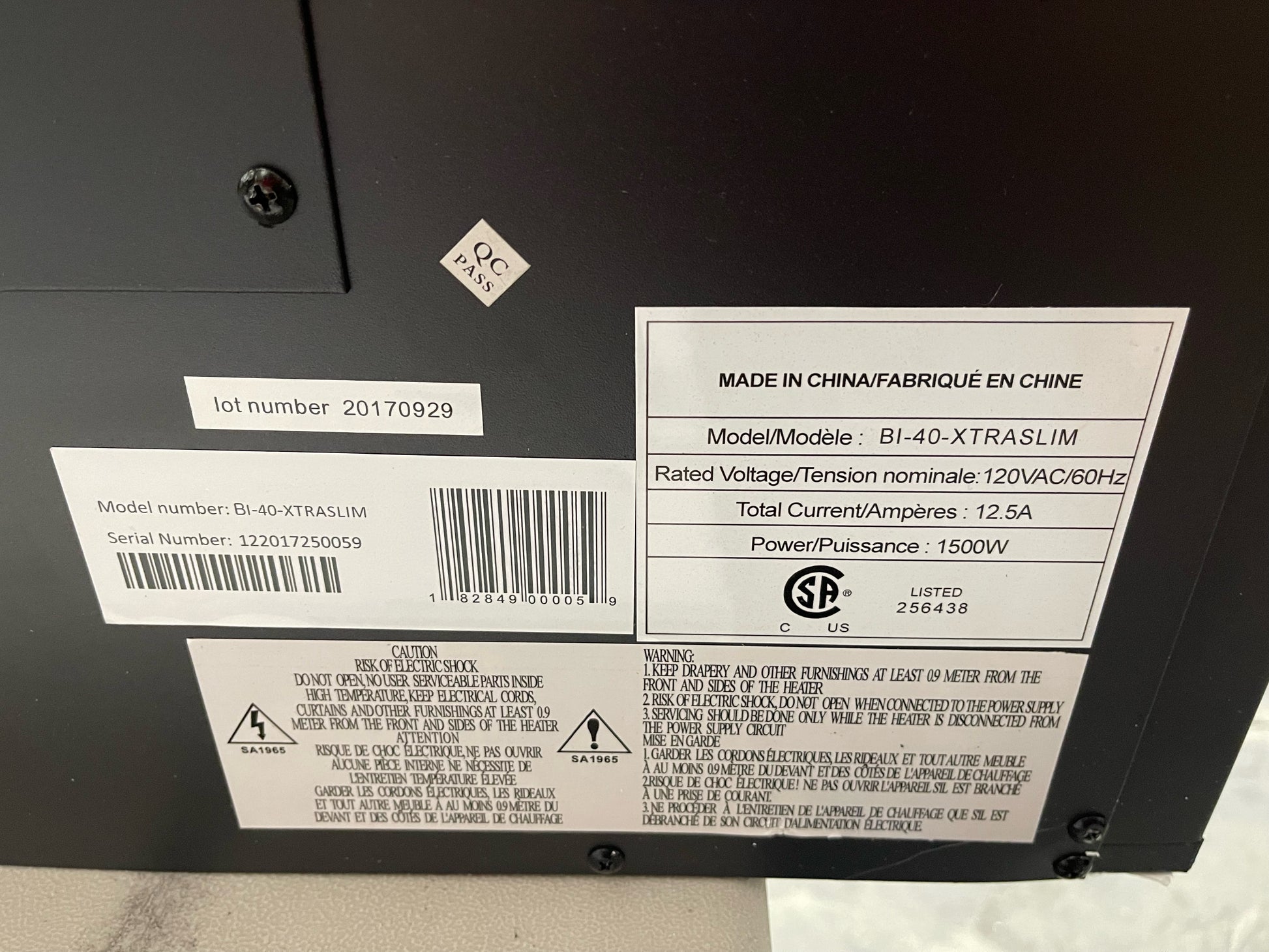 The BI-40-XTRASLIM-OOB is part of the Panorama series by Amantii. This is electric linear is 40” and is only 4” deep for 2 x 4 wall stud installation or can be wall hung. It is also outdoor rated but requires an optional Pan Cover sold separately. This fireplace has been inspected and tested to function normally. The front glass has been replaced due to breakage in transit. See the condition images and video attached.