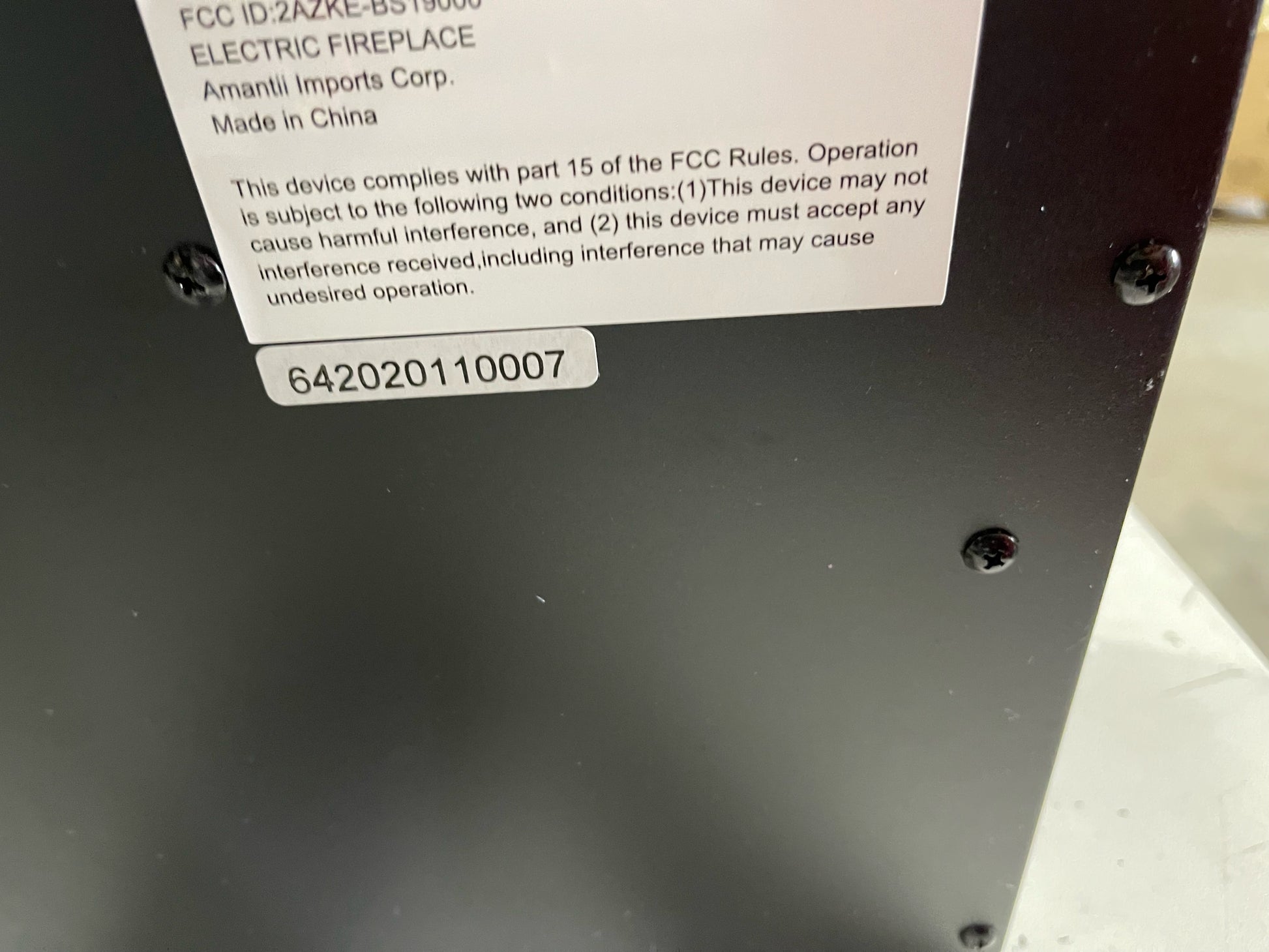 Fireplace has been inspected and tested to function normally. The fireplace has had the front trim replaced due to damage in previous transportation. Fireplace has been re-packaged in the original box. See images and videos for condition.
