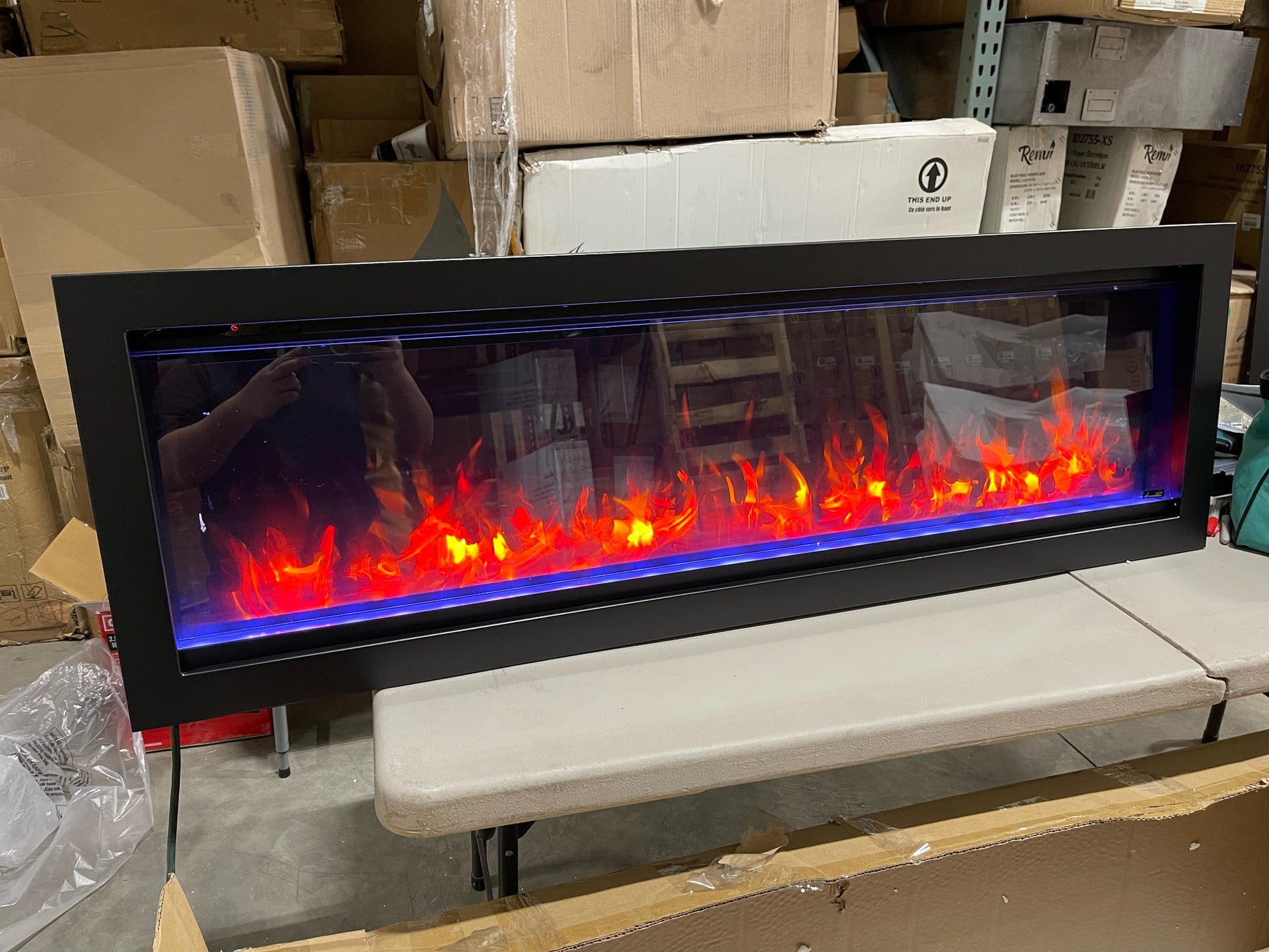 SYM-50 BESPOKE-OOB-1 - Open Box Sale - Electric Fireplace - 60" Clean Face Electric Built-in with log and glass, black steel surround