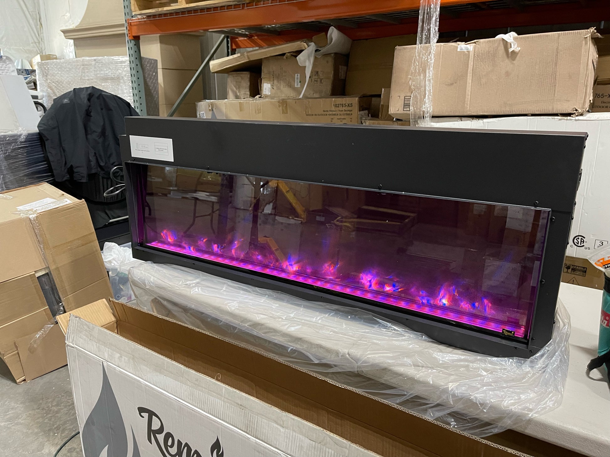 Product Description: This fireplace has been tested to function as normal. Small blemishes on the finishing flange/lip, that will not be seen when installed. See images and media for condition.