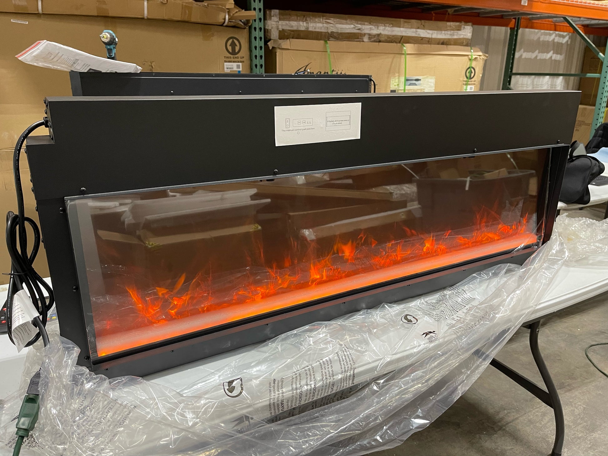 The fireplace has been inspected and tested to function as normal. The fireplace is missing the trim. When installed, the finishing product will need to be brought up clean to the finishing lip. See images and photos for condition.